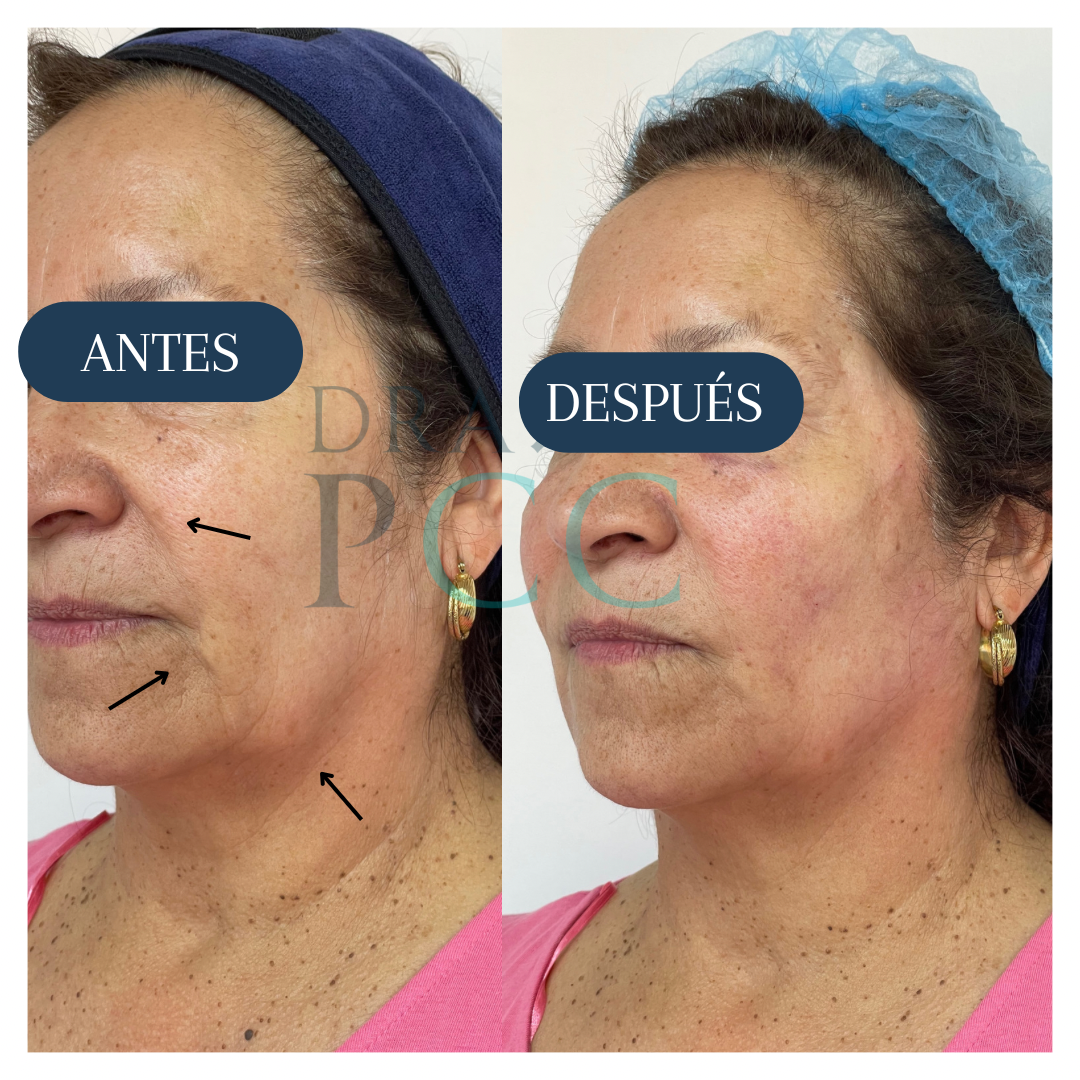 - Adipoestructuración facial en tercio medio e inferior del rostro.