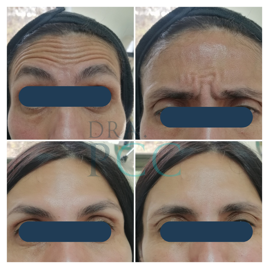 Más conocida como botox (no es relleno) , ayuda a relajar los músculos y con ello las arrugas dinámicas que se producen al gesticular. Al aplicar la toxina el efecto no es inmediato, comienzas a ver cambios desde el día 3 posterior a la aplicación hasta el día 14, que es cuando se puede hacer retoque en caso de ser necesario.